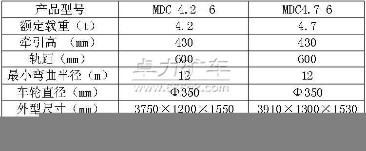 | 型號 | 容積(m) | 載重( t) | 軌距 (mm) | 軸距 (mm) | 車輪直徑(mm) | 牽引高度 (mm) | 卸載角度 (度) | 外型尺寸 | 自重(kg) | ||